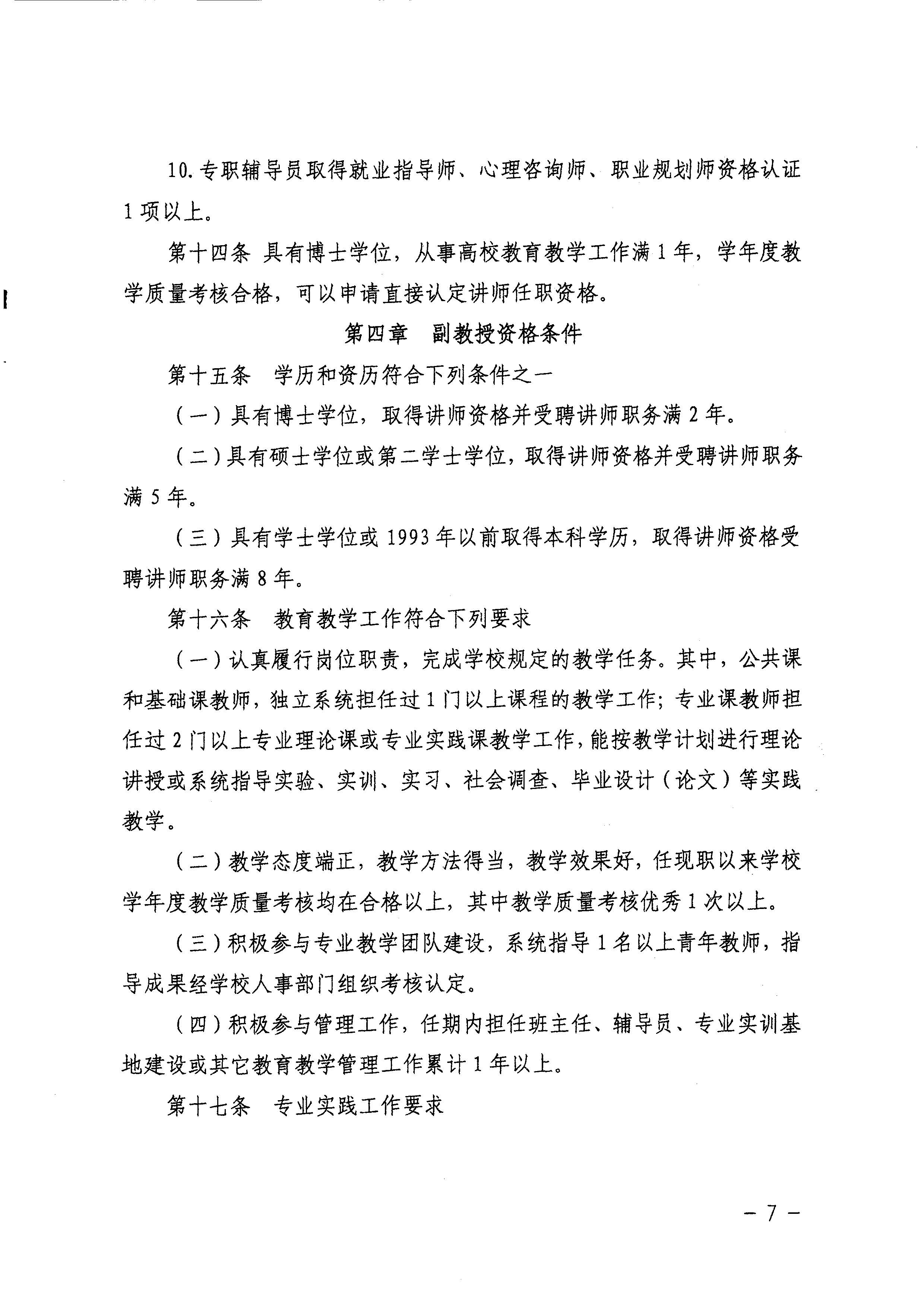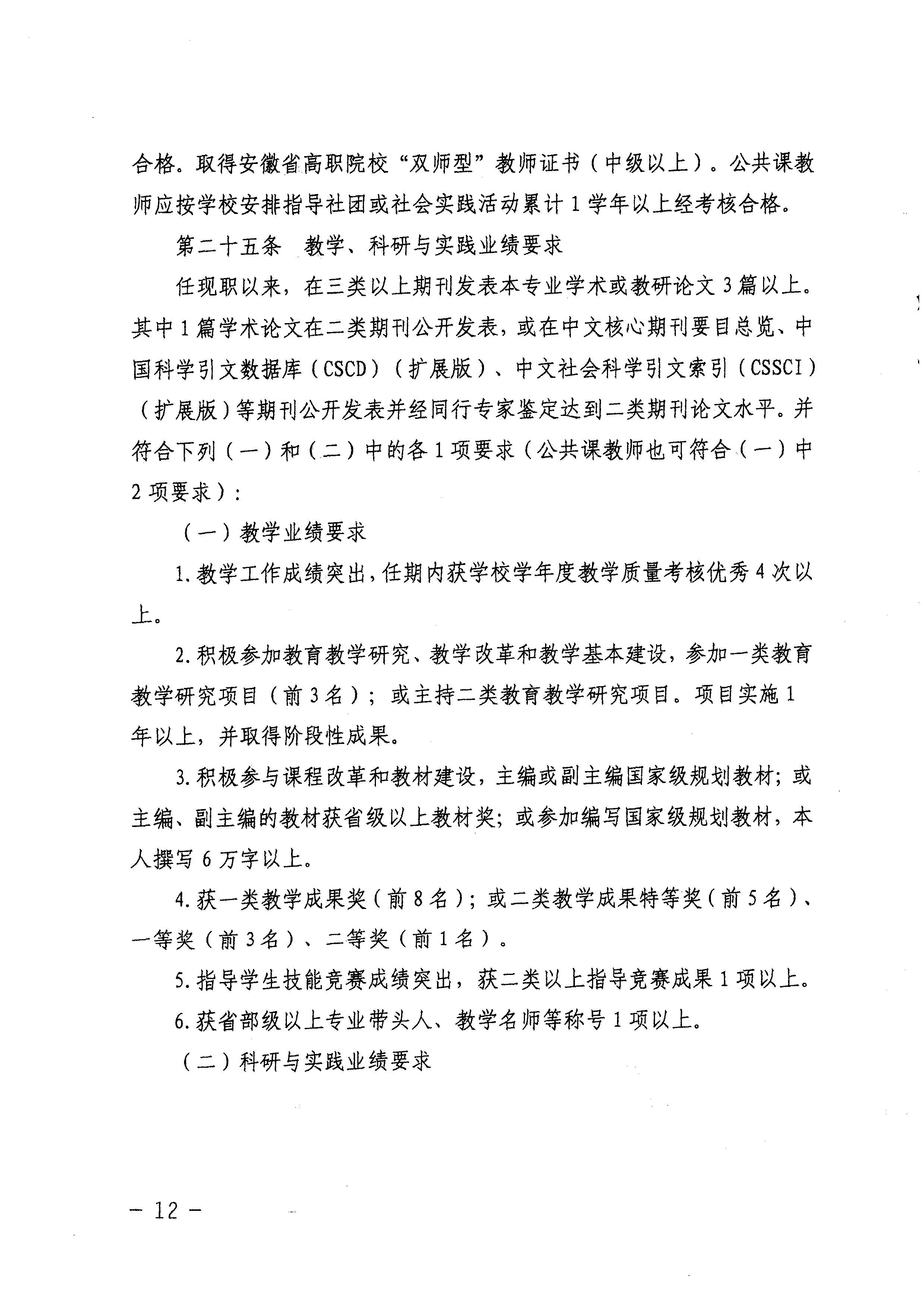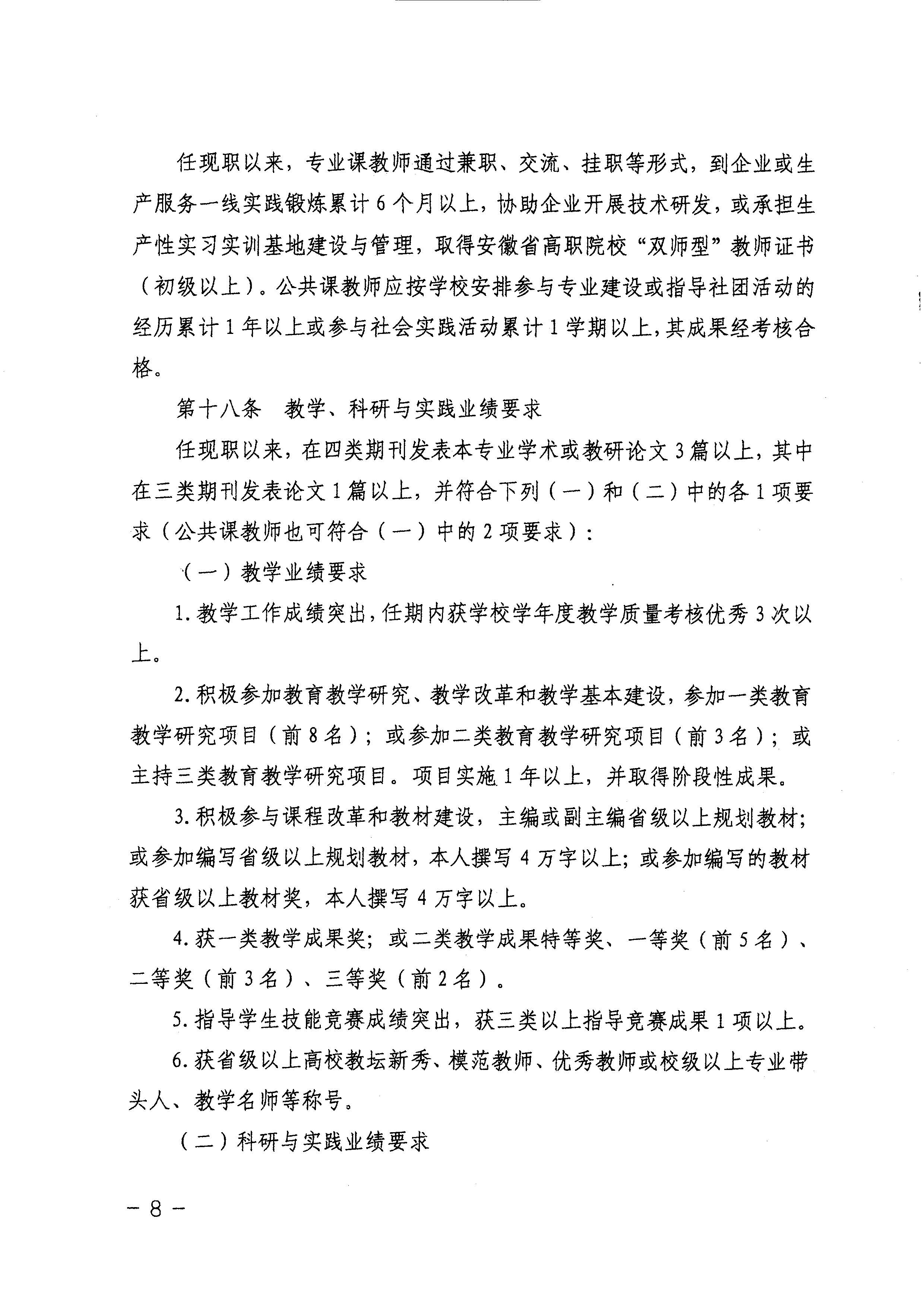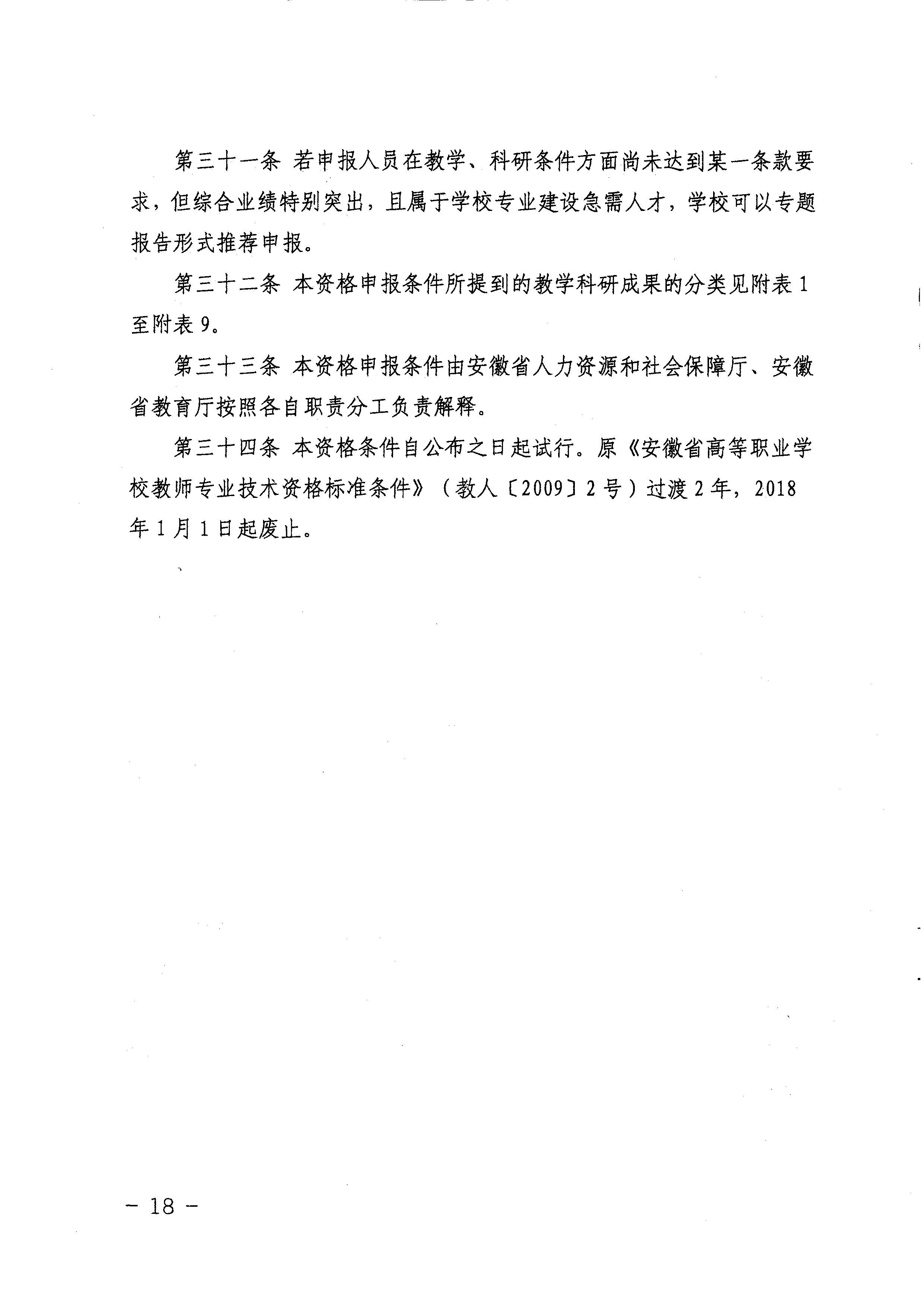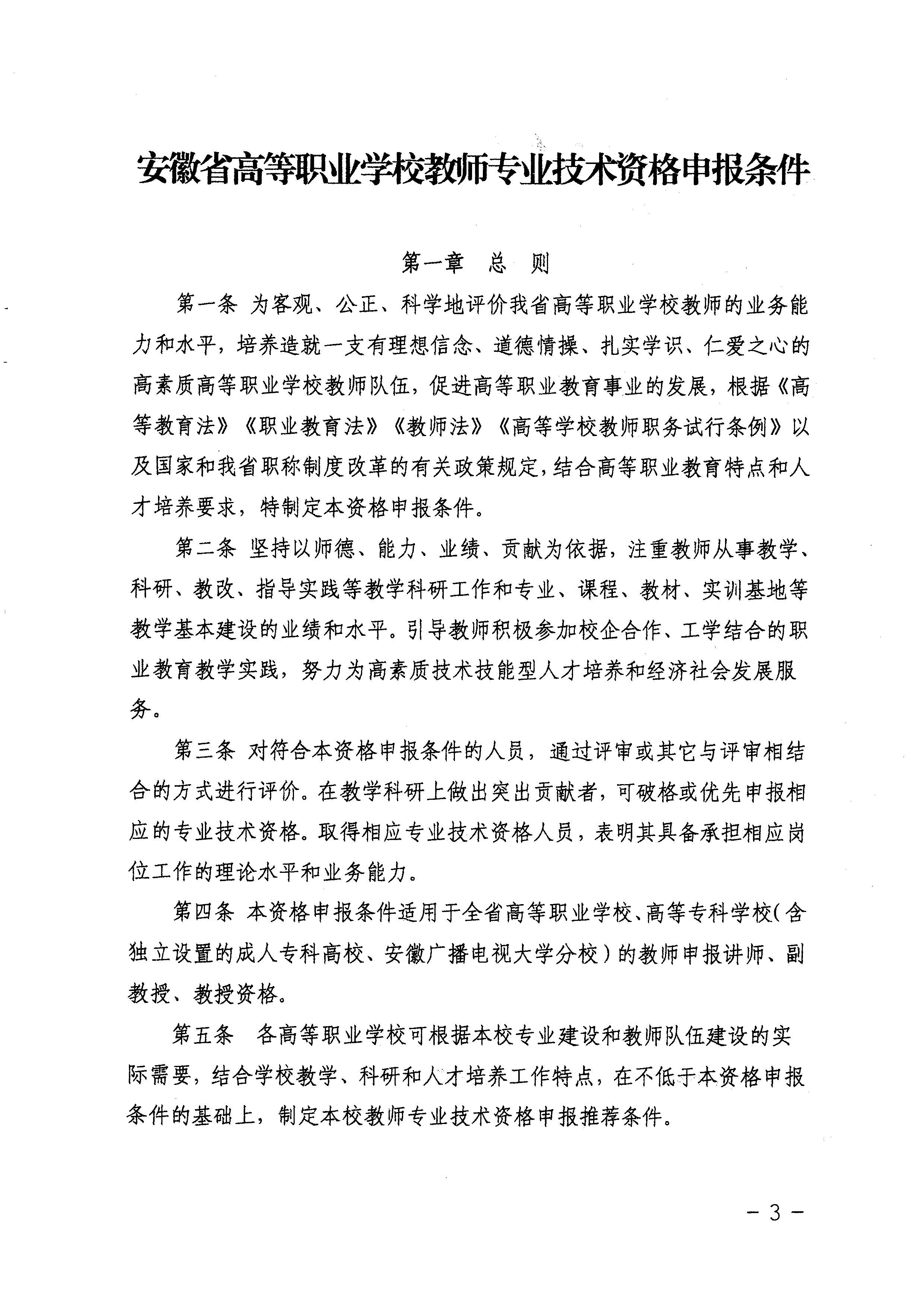 《安徽省高等职业学校教师专业技术资格申报条件》(试行)