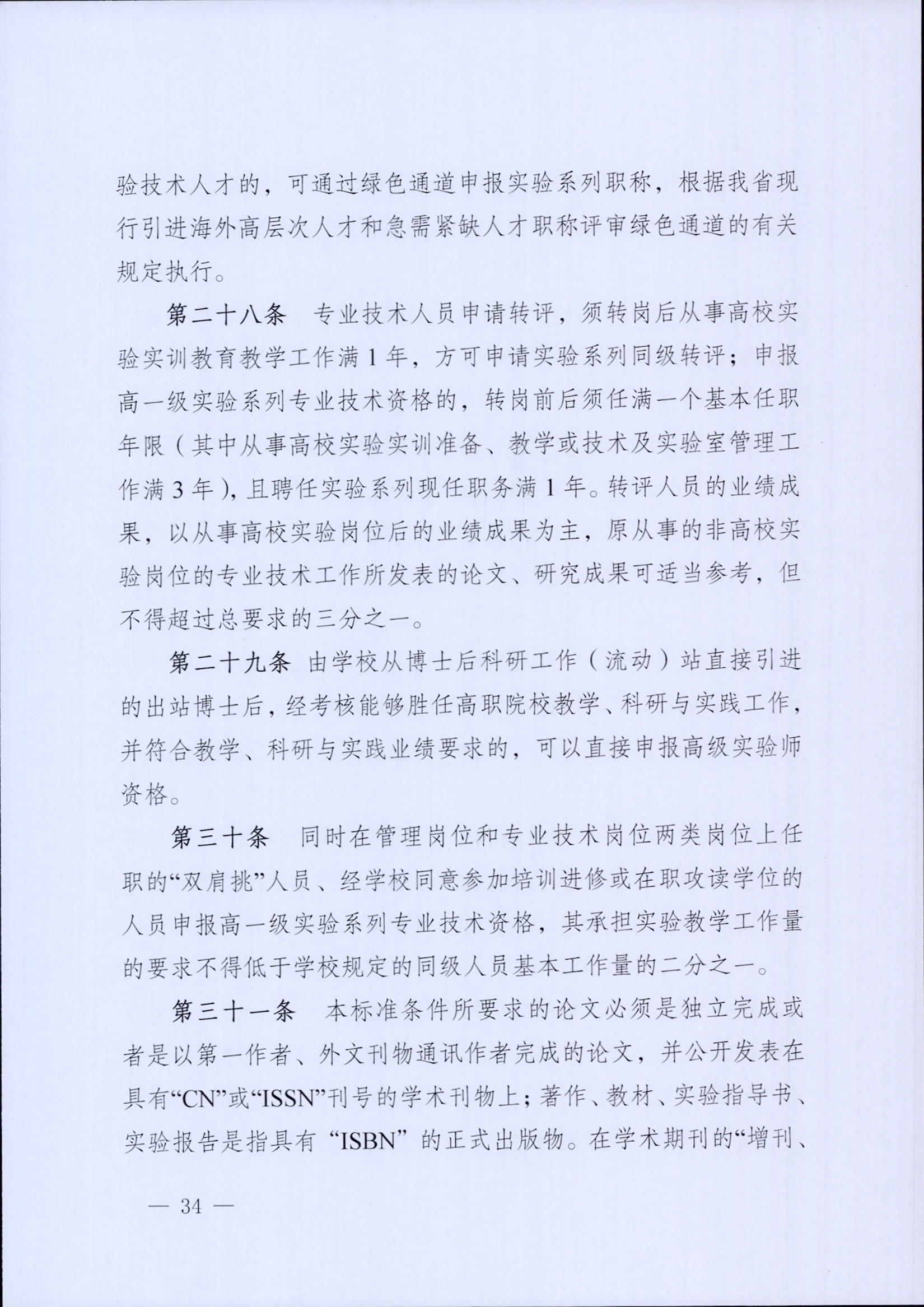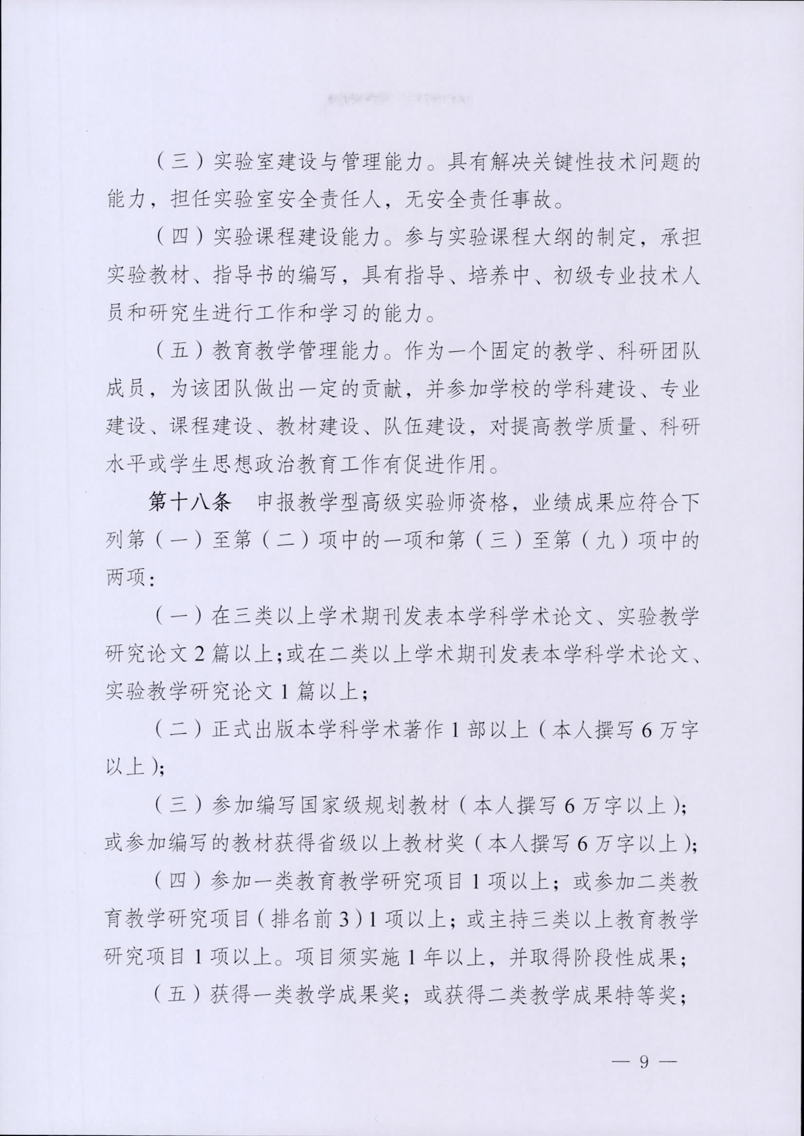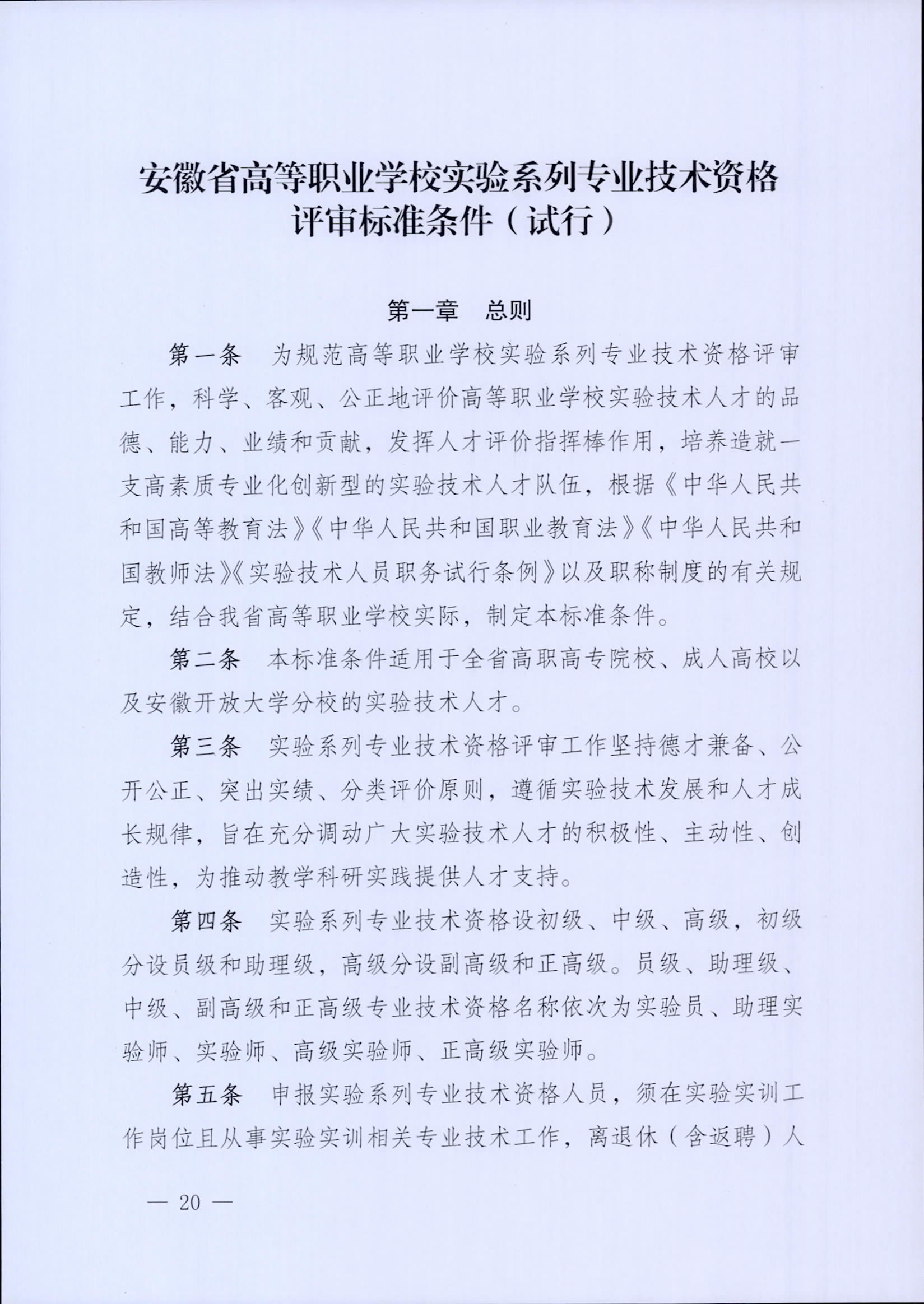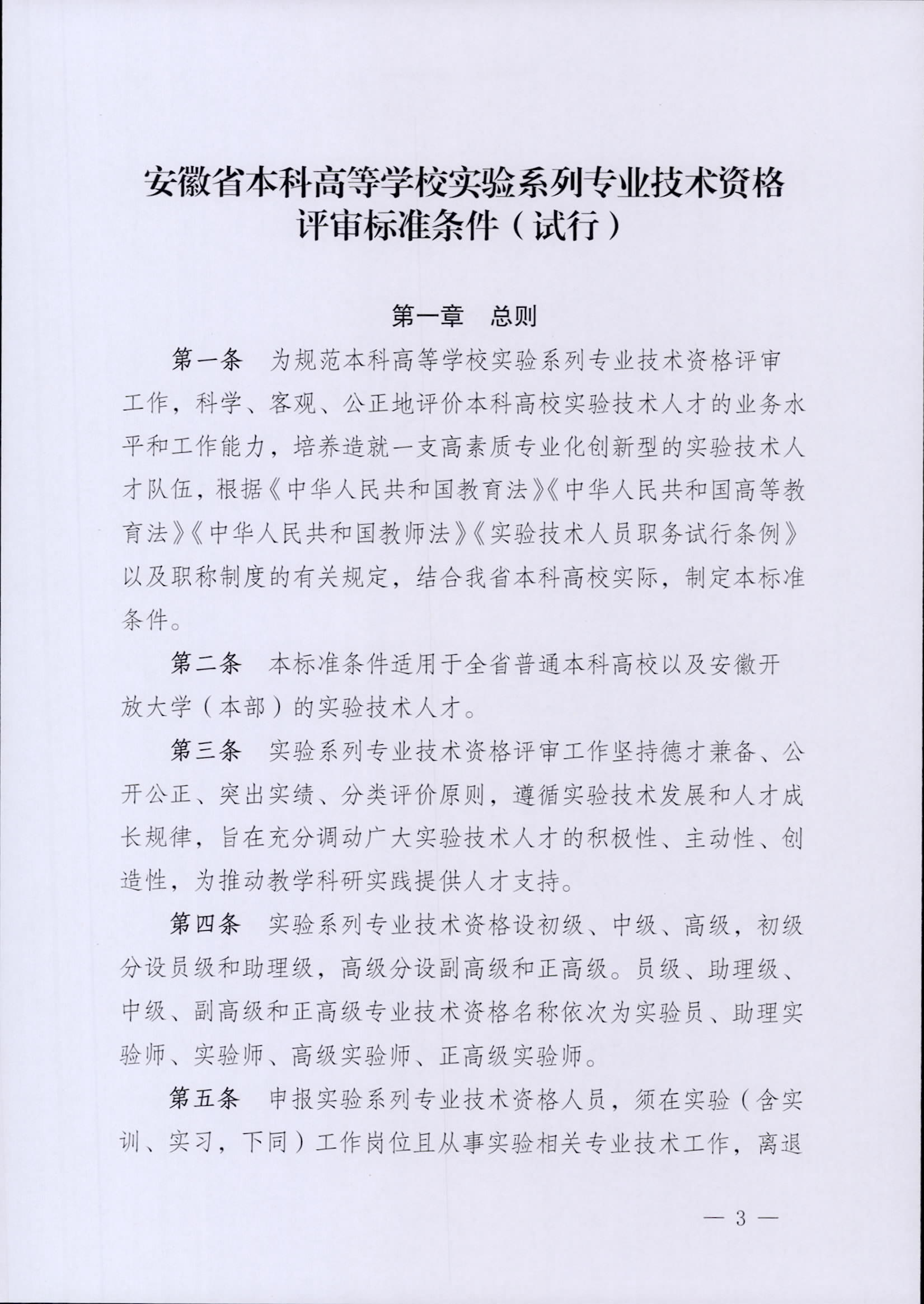 《关于印发安徽省高校实验系列专业技术资格评审标准条件的通知》