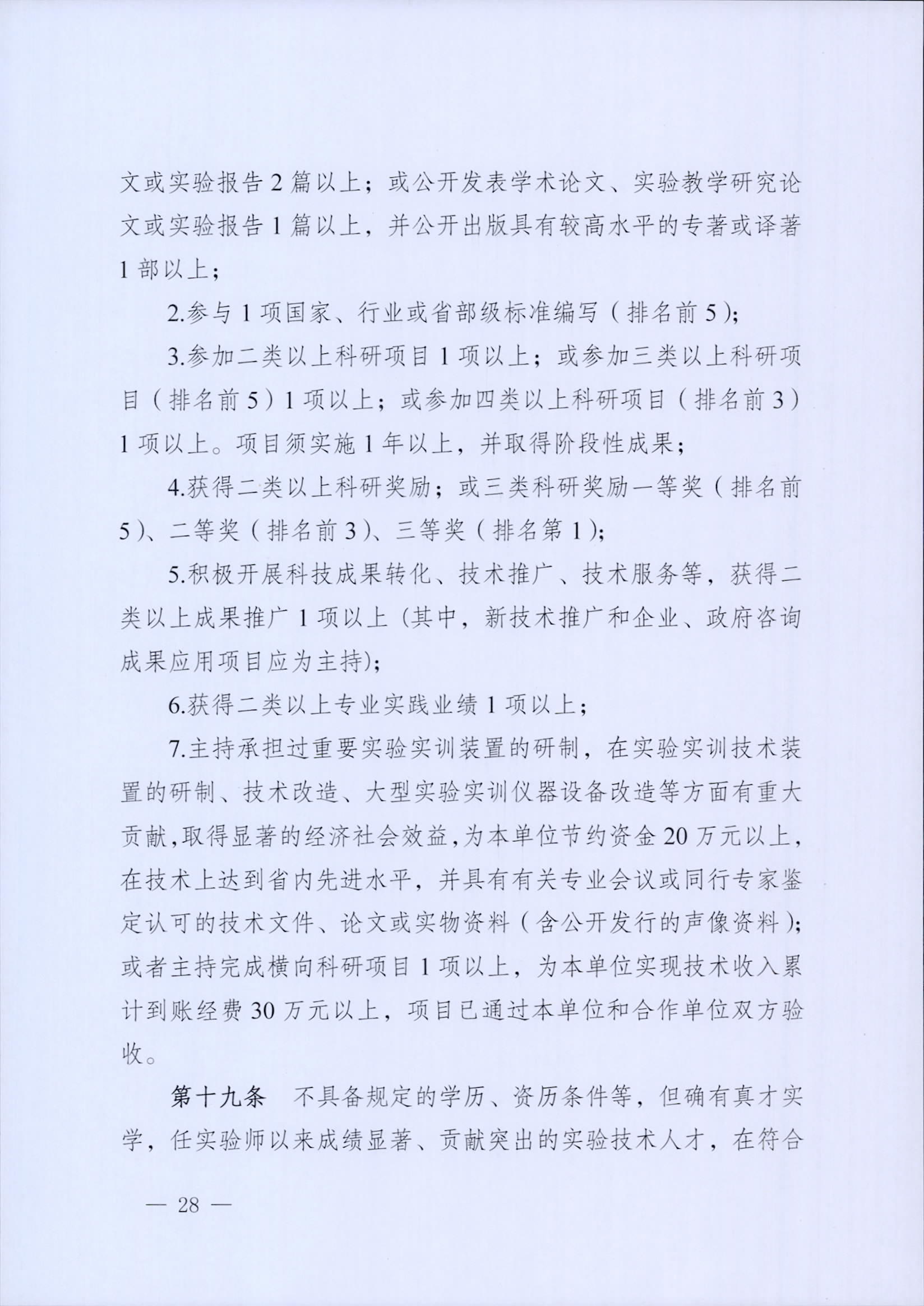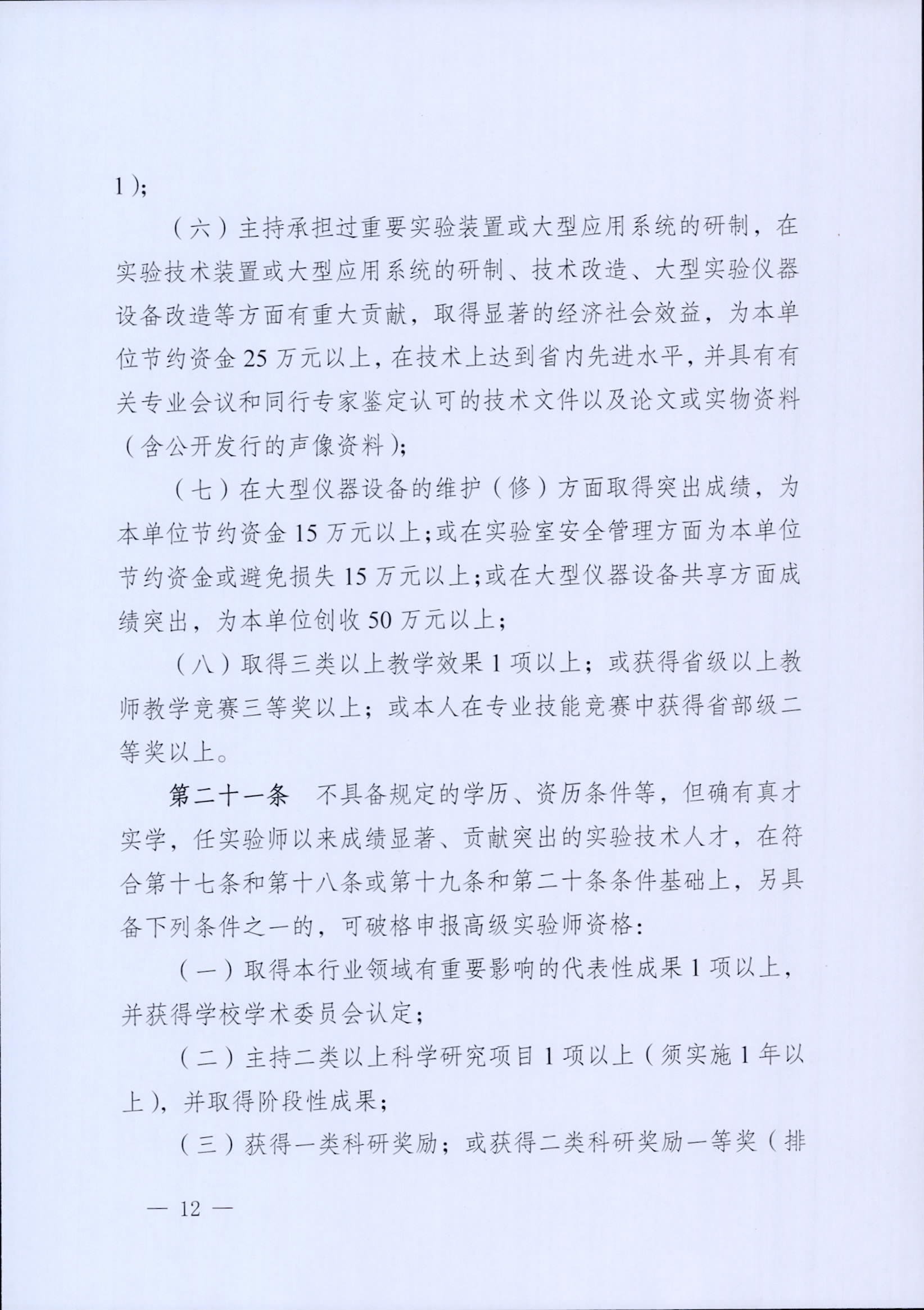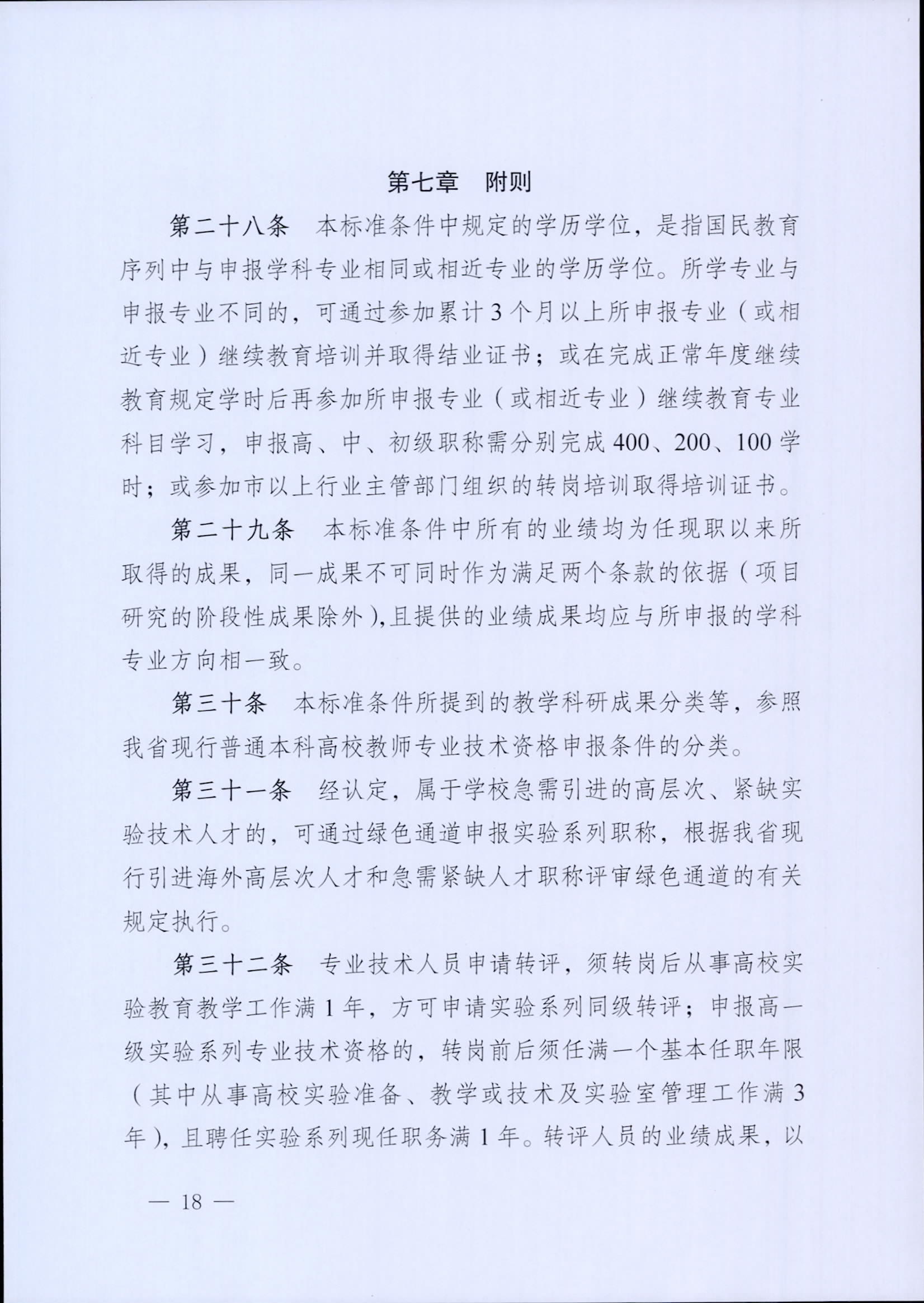 《关于印发安徽省高校实验系列专业技术资格评审标准条件的通知》