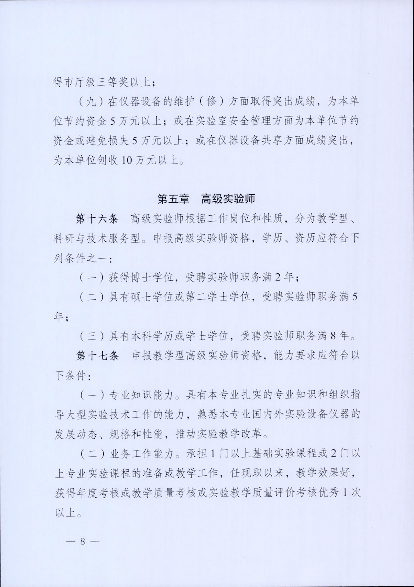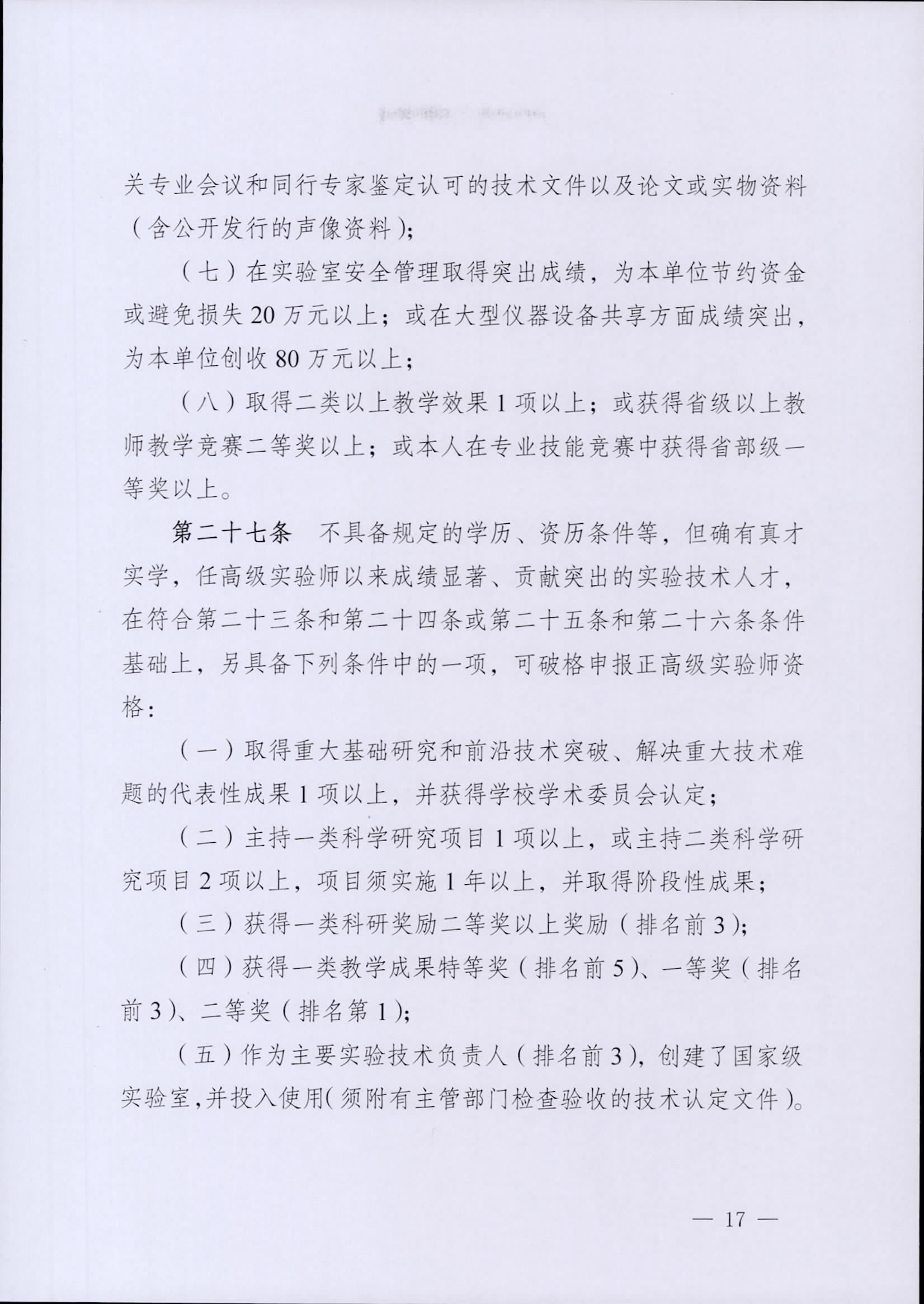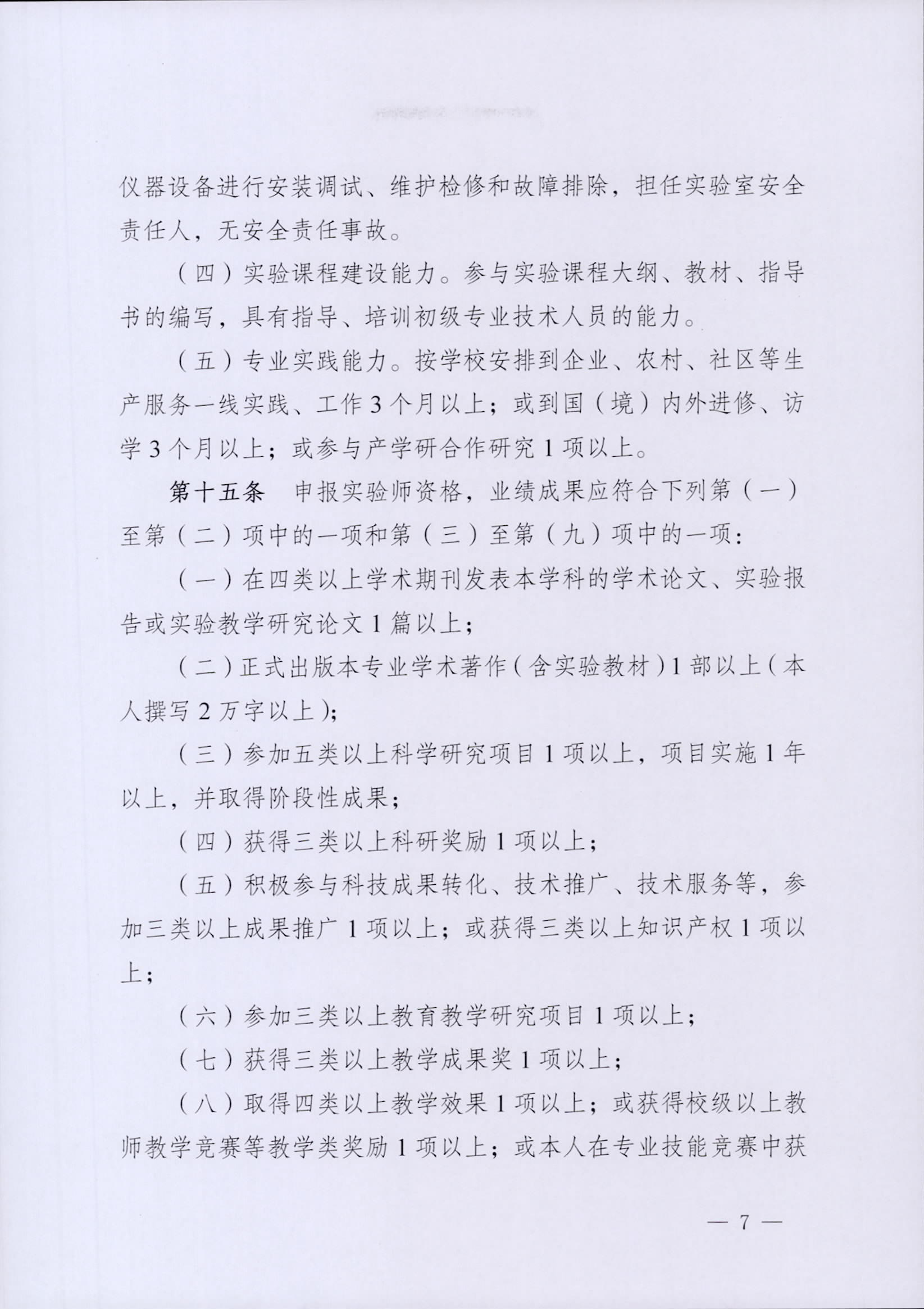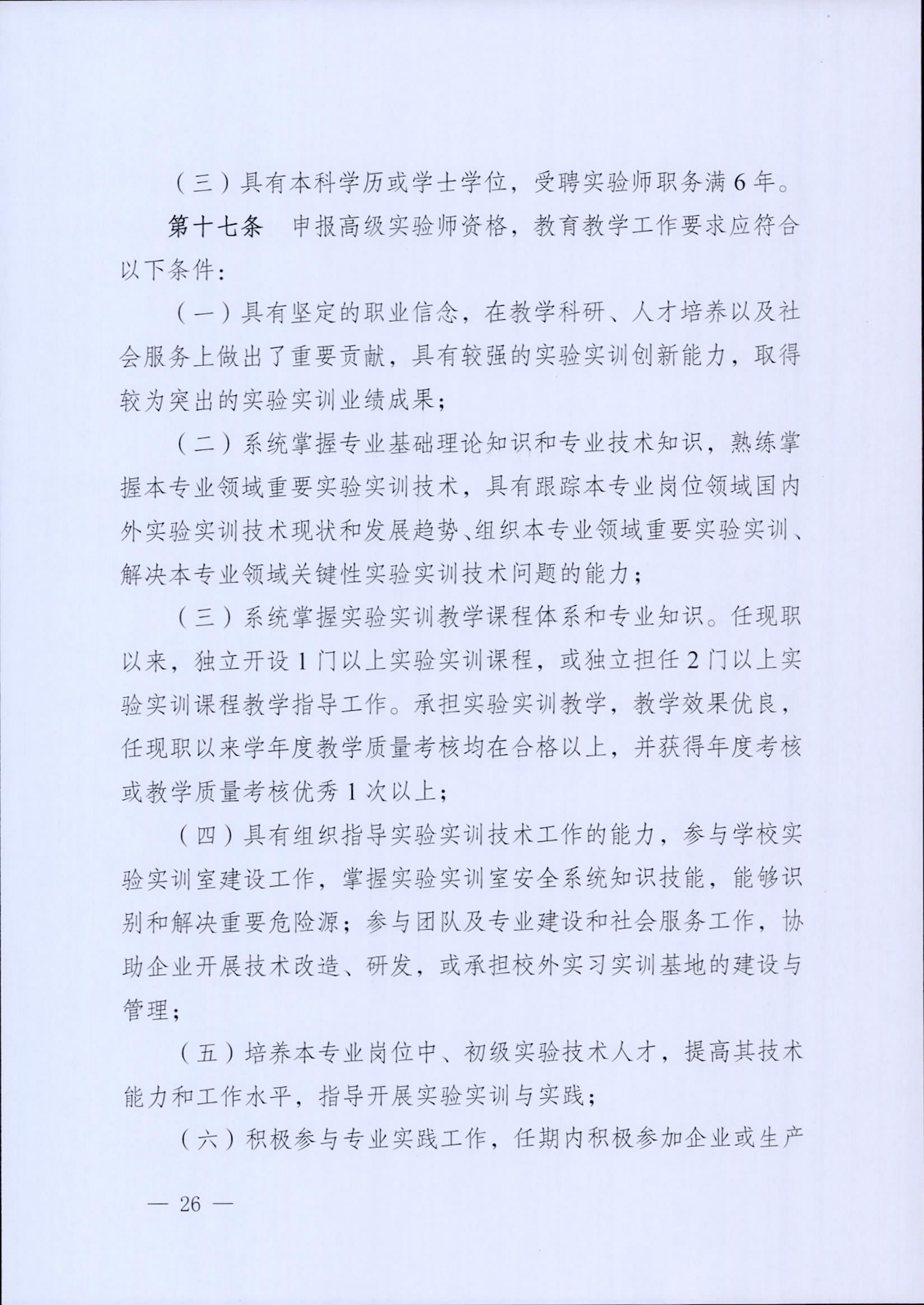 《关于印发安徽省高校实验系列专业技术资格评审标准条件的通知》