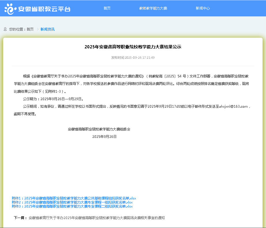 2025年安徽省高等职业院校教学能力大赛结果公示