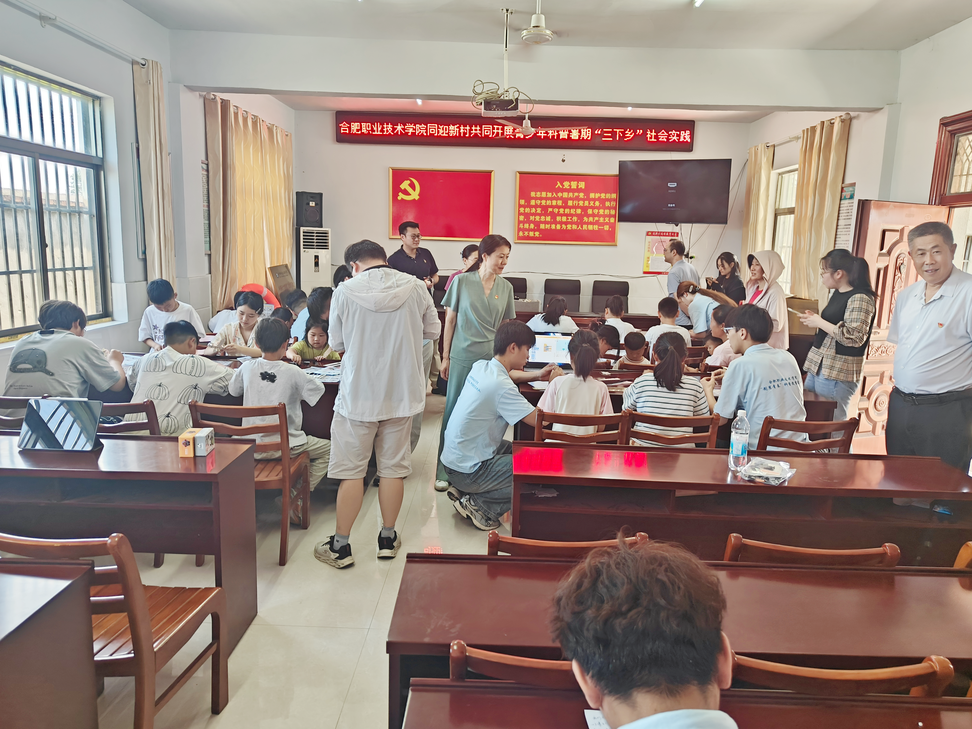慰问当日,恰逢我校机电工程学院暑期“三下乡”社会实践团队在村活动室开展丰富多彩的服务活动。金飞燕一行饶有兴致地走进现场,只见孩子们正沉浸在科技与创造的快乐海洋中。防溺水知识讲座筑牢了安全意识防线;乐高颗粒在孩子们灵巧的手中变幻出无限创意;而航模拼搭区域更是气氛热烈——一架架雏形初现的航模承载着孩子们对蓝天的想象,专注的眼神、协作的身影和成功的欢呼交织成一幅充满活力的画面。看到孩子们学有所乐、乐有所获,金飞燕对实践团队利用专业所学服务乡村、播种科学梦想的实效给予充分肯定。